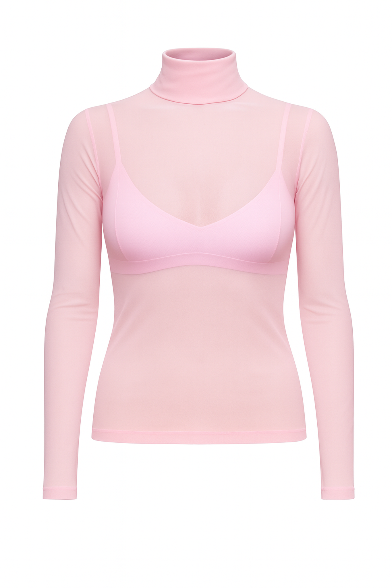 Golf collared long see-through colored shirt with two stitches along the sleeves and on the front.