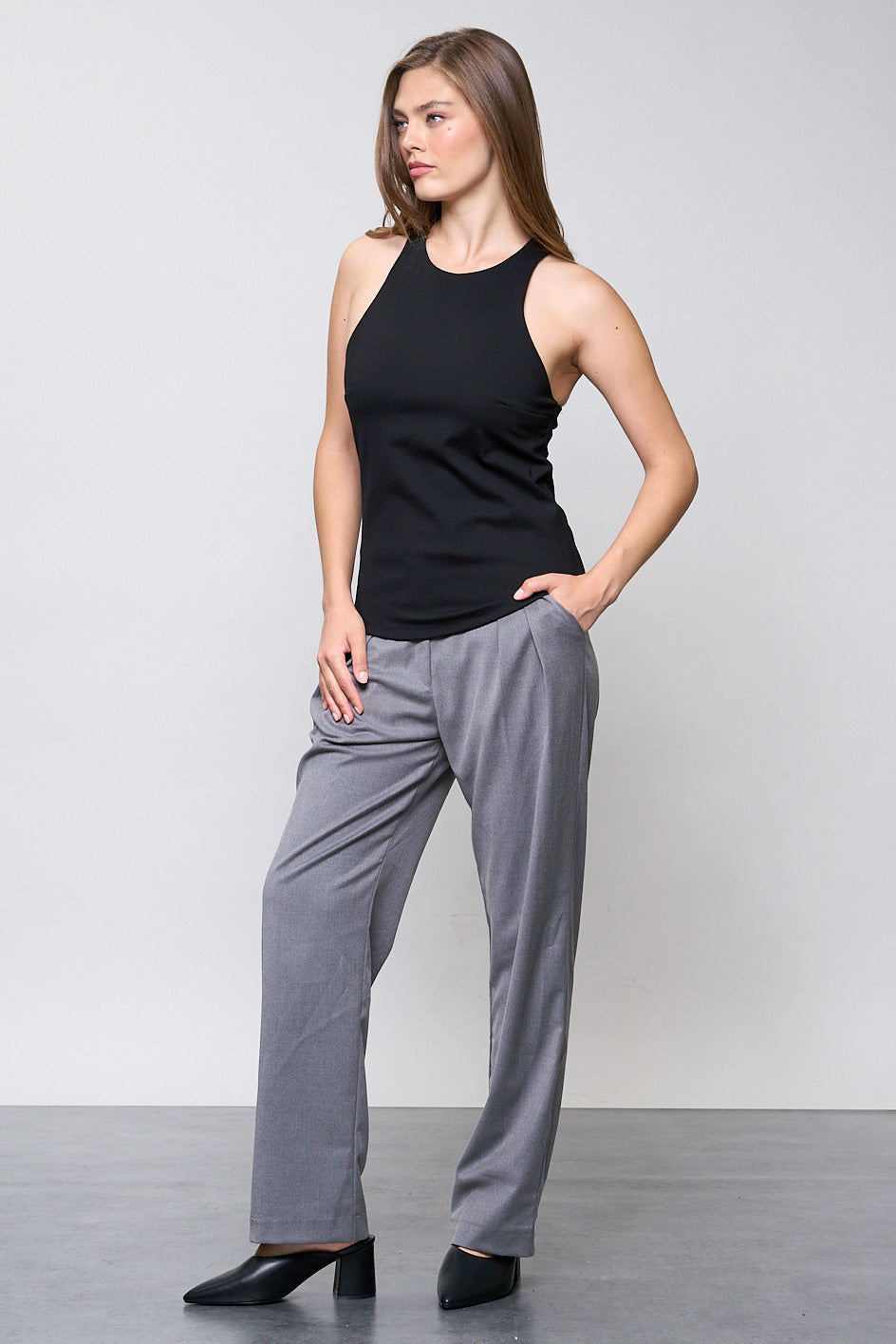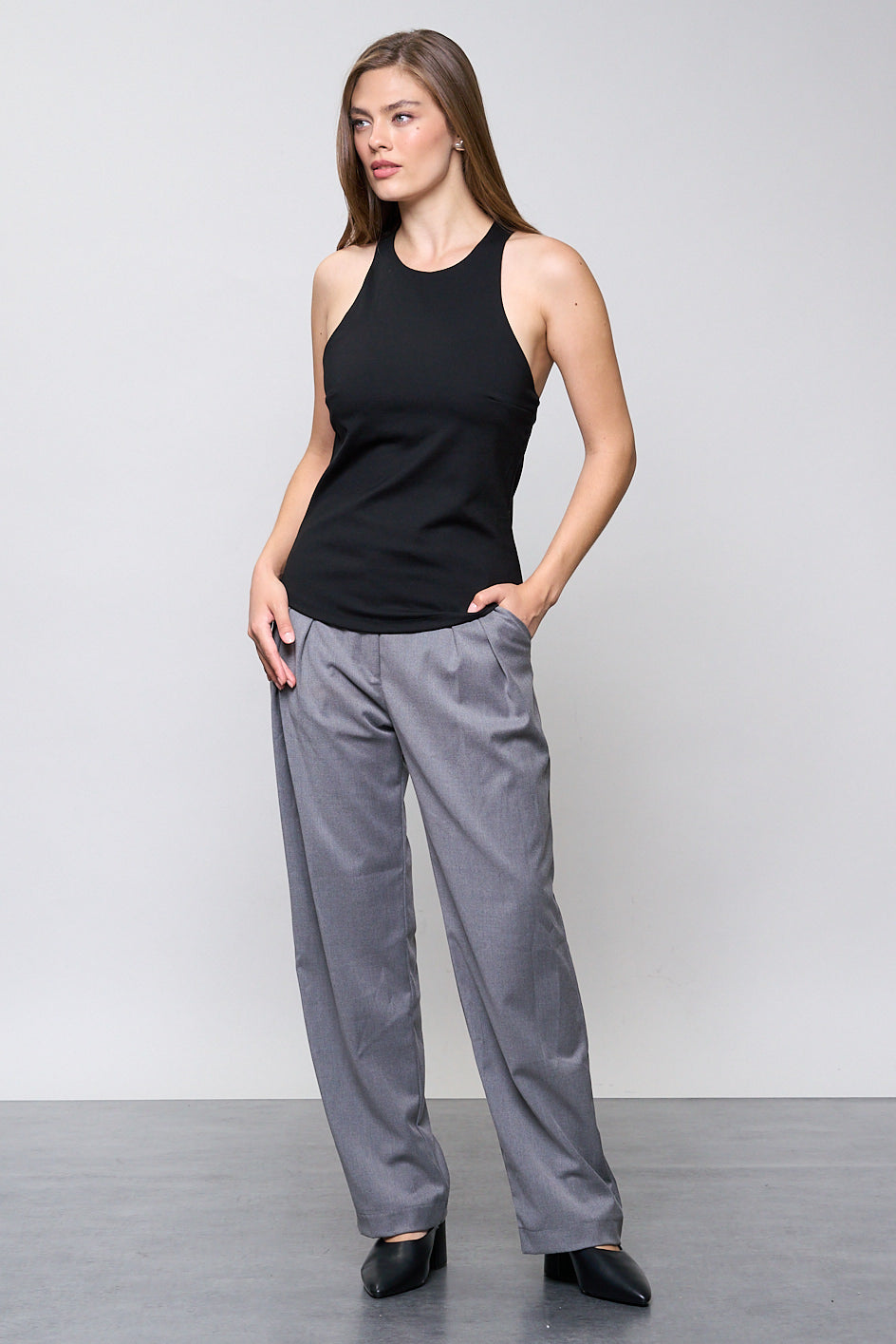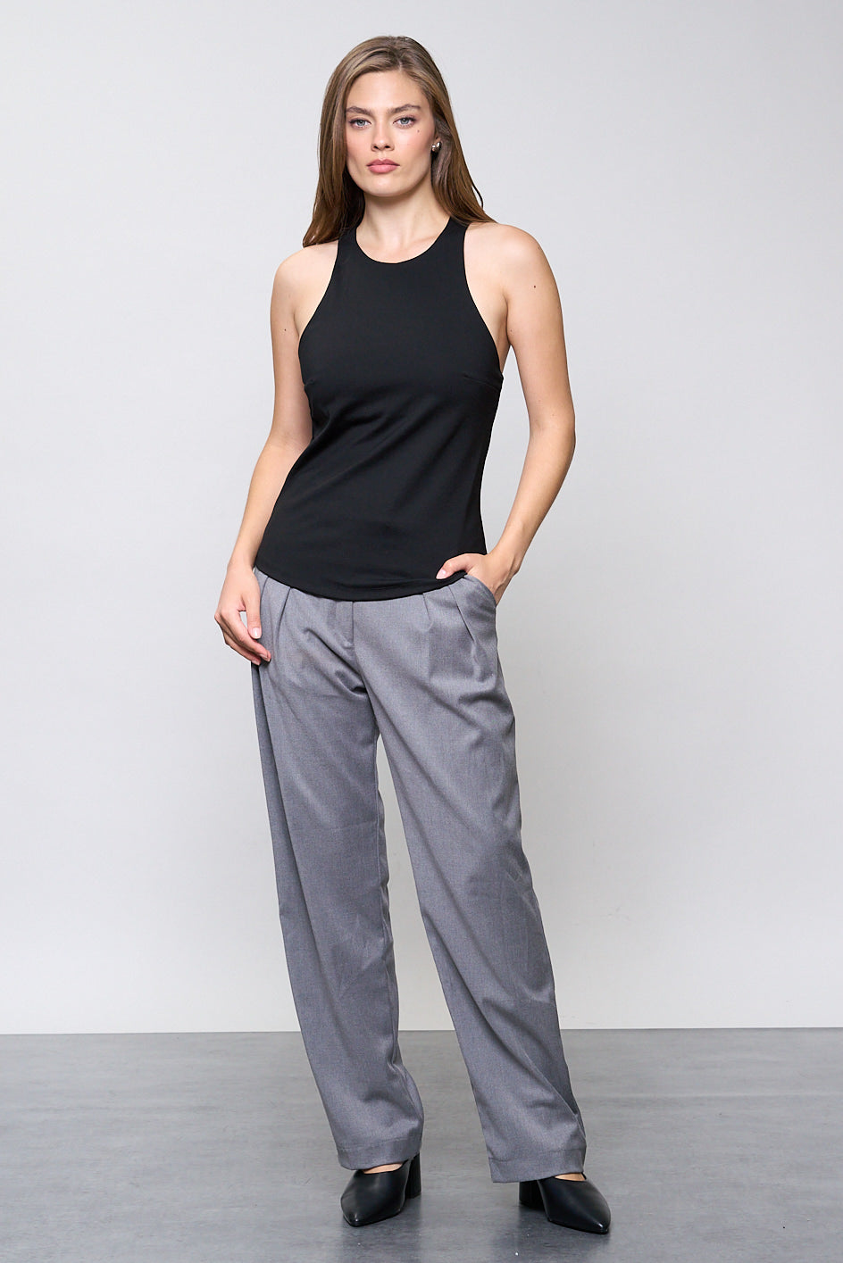 Viscose and Lycra top with wide hollow out-hole at the back.