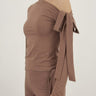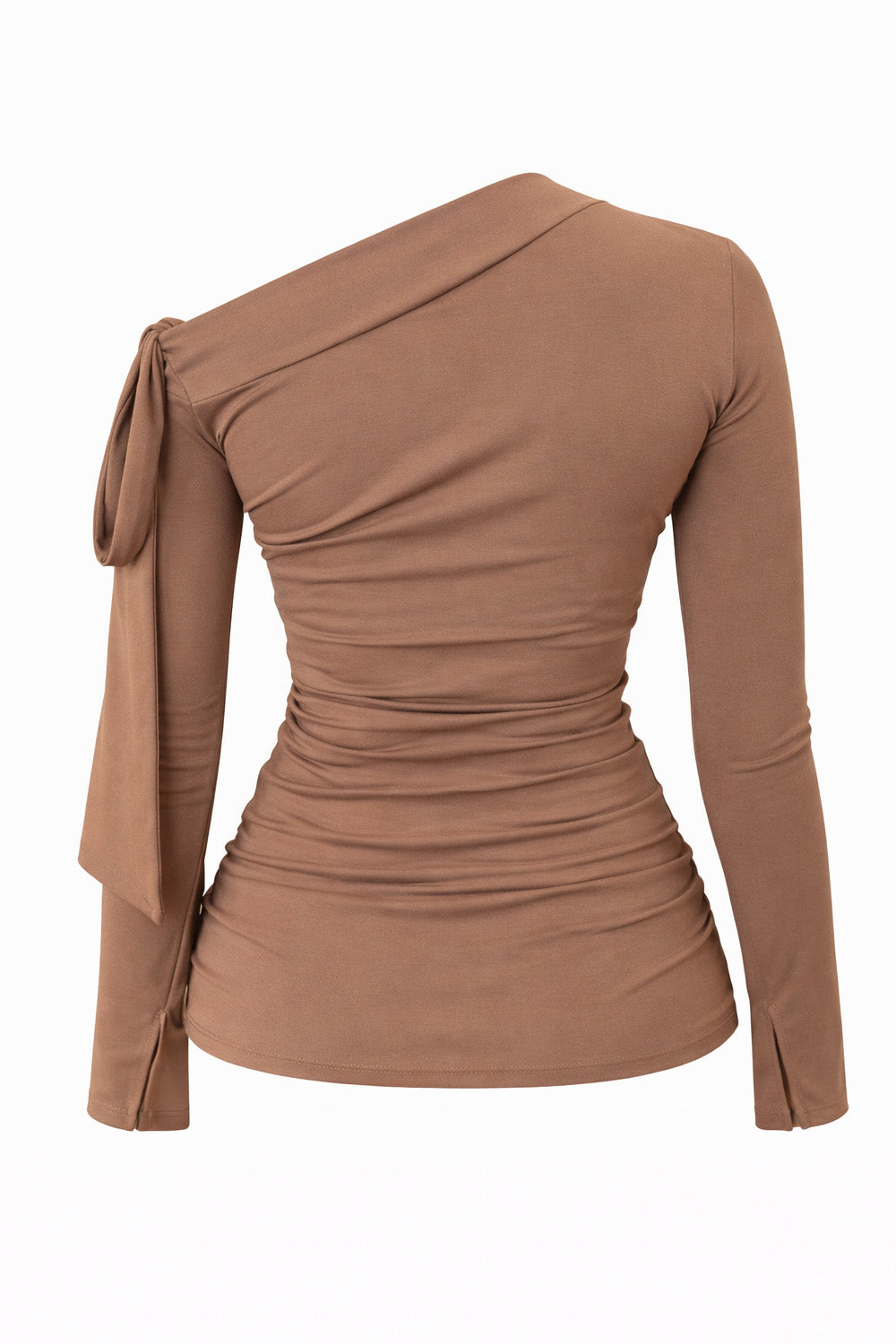 ASYMMETRIC LONG-SLEEVE TOP - BROWN