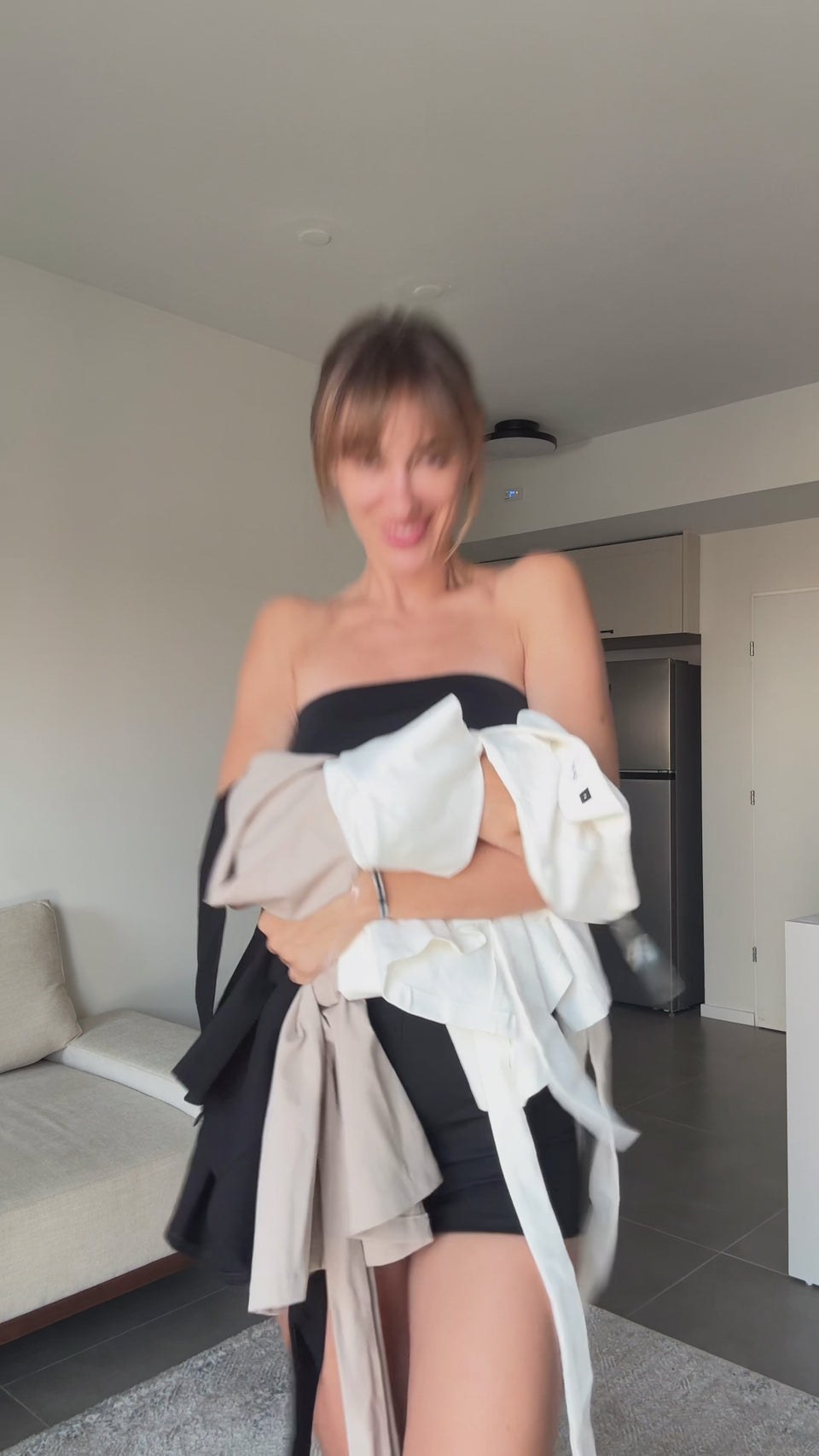 A clean and structured strapless top with a flattering fit and a matching tie belt at the waist. Minimal and sharp, with smooth lines and a timeless feel.